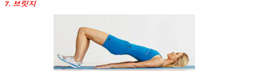 초기통증(근육통) 브릿지, 플랭크 코어자극, 자세 교정 10분이내, 통증 없을 때만 진행