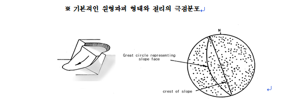 일반적으로 암반에서 비탈면의 파괴형태는 원형파괴(Circular Failure), 평면파괴(Plane Failure), 쐐기파괴( Wedge Failure) 및 전도파괴(Toppling Failure)가 있다.
